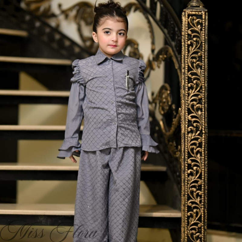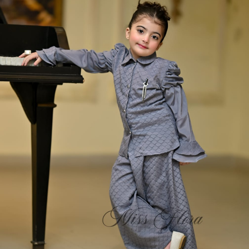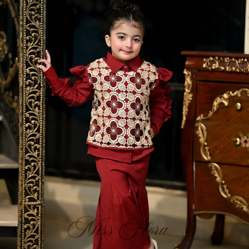 Crimson Crown Set is a sophisticated and stylish western ensemble designed to bring a touch of royalty to any young wardrobe. This elegant set features a rich maroon shirt crafted from soft, high-quality fabric, paired with matching bottoms that ensure both comfort and style. The highlight of the outfit is the beautifully embroidered vest, adorned with intricate detailing that adds a refined and luxurious touch.this set is ideal for festive celebrations, parties, and special occasions where your child can stand out with grace. Available in sizes 5 to 10 years, the Crimson Crown Set combines comfort, style