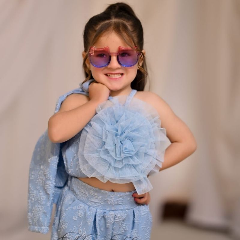 The Sky Blossom Western Suit Set is a delightful and stylish outfit crafted to make little ones look effortlessly charming. Featuring a soft pastel palette, this set exudes a gentle, fresh, and playful vibe that is perfect for young children. The ensemble is adorned with elegant floral detailing, adding a touch of sophistication while maintaining a cute and youthful appeal. Designed with both comfort and style in mind, the suit set allows ease of movement, making it ideal for active toddlers. Its modern Western-inspired design combines a contemporary look with timeless elegance, ensuring your child stands out during birthdays, casual outings, or special celebrations. The outfit is thoughtfully sized for children aged 1 to 4 years.